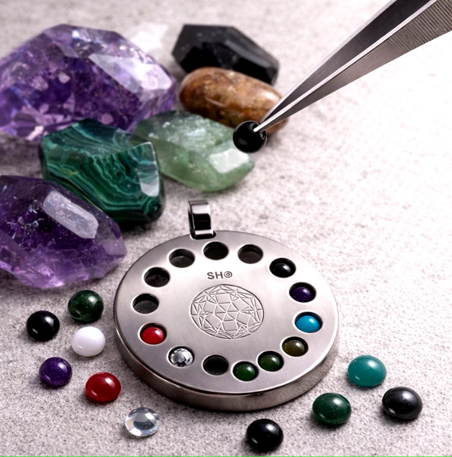 We also integrate specific components, including infrared elements and magnetic structures, designed to create a subtle electromagnetic environment around the body.